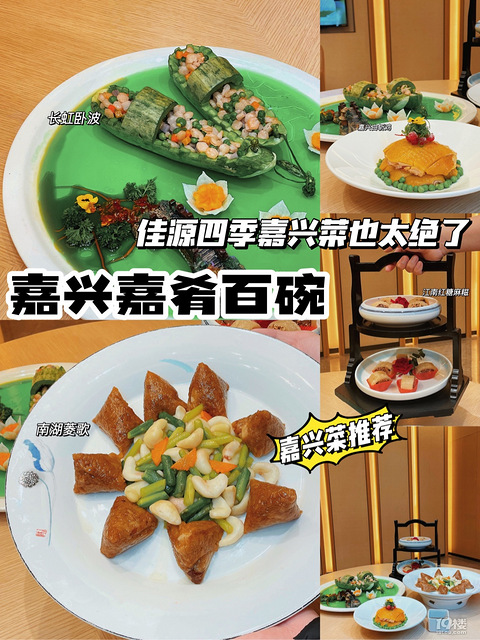 作为土生土长的嘉兴人 听说佳源四季可以吃到嘉肴百碗的评选的菜 感觉去满足了自己的嘉兴胃这次佳源四季的也太让我惊喜了 南湖菱 肉粽-【具体信息】店名:佳源四季酒店地址:蓬莱路181号-【菜品推荐】白斩鸡(冷菜)从小吃到大的一道菜 在嘉兴人眼里无鸡不成席 一盘白斩鸡 一碟鲜酱油 标配 清爽又不失鲜嫩 -长虹卧波首先就被造型惊艳的一道菜 小桥流水乌蓬船 也太能代表我们江南水乡嘉兴了吧 虾仁豌豆胡萝卜促成