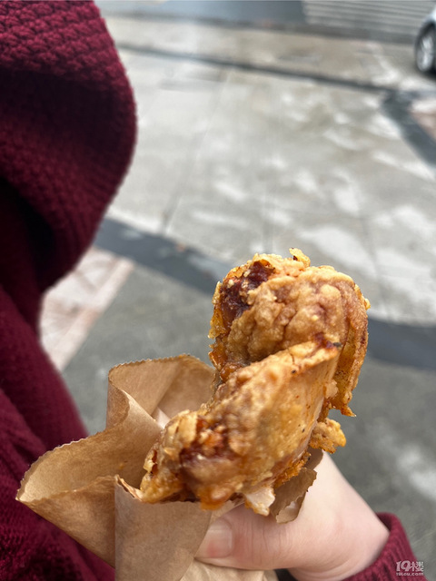 之前在嘉善那边一直听说市区的神腿这次终于和小伙伴一起去吃了朝花夕拾一人买了一个!8.5元一个!还有一份薯条薯条不是很建议但是神腿还是可以的!裹的面粉比较薄,很酥脆,一口下去并没有满口面粉,就很棒鸡腿也是划过口子的,比较入味,汁水也很多!