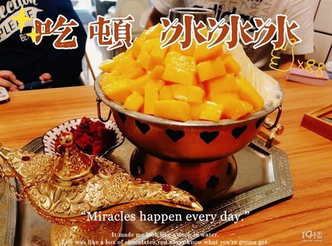 环境:在甜品界或者说绵绵冰的世界里,他们家的门头算是蛮大的!而且一条步行街,拥有三家分店,是何等受欢迎!! |芒果榴莲绵绵冰^这个绵绵冰对于我这个热带水果爱好者,简直是绝了!!! 这榴莲肉甜到以为是巴掌榴莲,也太美好了叭!还有超棒的芒果也是一点都不差,甜翻全场,心里美! |香水椰子冰^超级美貌有没有!适合喜欢清爽口味的宝宝们,不过选择两个都吃,记得先选绵绵冰! |虾片^这个虾片也是个意外,意外的好