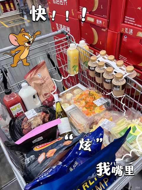嘉兴出发,高速1小时就到了,停车很方便,车位巨大!会员卡260一年,主卡副卡。我们逛了2个多小时,每个区域都去了,还排队试吃,很给力哦,人真的好多,跟不要钱似的买东西……烘焙类:伯爵红茶瑞士卷、巴斯克芝士蛋糕、青柠芝士蛋糕、榴莲千层都是很不错滴食品类:烤鸡或者烤鸡腿一定要冲一下!刺身寿司、鳗鱼饭买的人好多啊,糖水黄桃、猪肉铺、虾片、牛肉、蓝莓这些都是经典品如下图,买了一车[ej=1F601]花了1