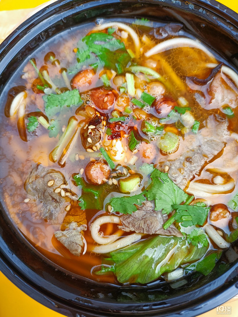 华庭街可可奶茶店旁边有家粉店超级好吃,下图是我点的牛肉面,面跟平时吃的面不一样,有劲道,不容易坨到一起。里面还有生菜,超级好吃。不吃辣的人可以不要辣椒哈