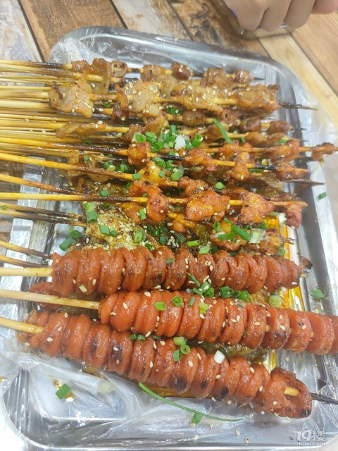 又来人才公寓吃楼下烧烤了,快乐!先来一份童年的鸡柳,要大份,就是小时候学校门口的味道。再来一堆深夜烧烤,大鸡腿、烤鸭舌、烤猪脑必点,鸡腿有一点点烤焦了也不影响兴致。