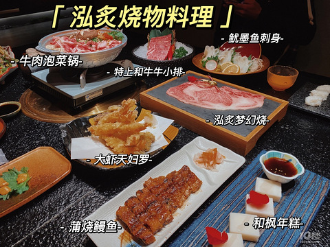 -【特上和牛牛小排】:靠厚实的牛小排,烤肉小哥给我们烤了7分熟,外脆里嫩,沾上海盐黑胡椒,超满足,超好吃。-【泓炙梦幻烧】:超级梦幻,有个性的烤肉,烤肉小哥给我们烤的很嫩,包裹上米饭,铺上海胆,沾上无菌蛋液,直接塞嘴里,肉的油态米饭的清香,蛋液的顺滑,甜蜜感暴增,回味过来,让人欲罢不能。-【泓炙烧肉饭】:无菌蛋液包裹着米饭,肉的肥美,佐菜的甘甜,一口咀嚼,也太幸福了吧。-【鱿墨鱼刺身】:这个刺身上