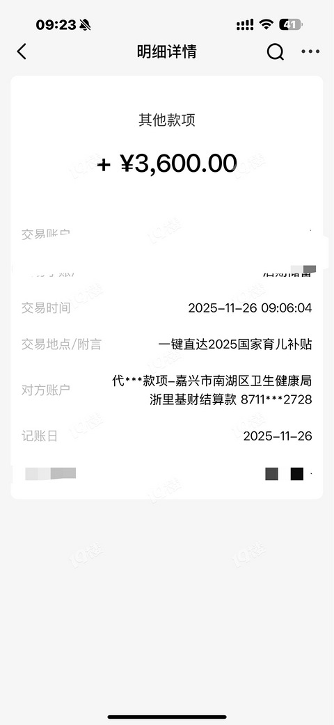 第一年度育儿补贴3600已到账!昨天才接到街道通知说周三,周四,周五陆续发放。一大早就已收到! 出息了,好大儿有工资了,小小年纪年薪3600。哈哈哈