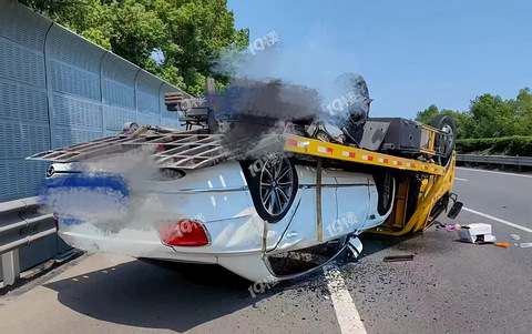 板车拉着浙F宾利在高速上翻车了!据说板车还没背车险…