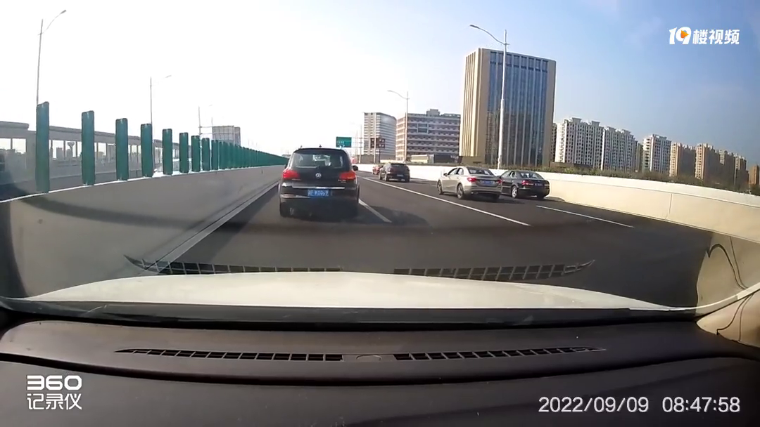 高架上又见连跨三车道实线变道的!幸好后面的都刹住了…