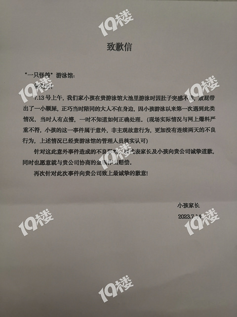 嘉兴泳池炸屎后续!家长发致歉信:孩子只是放屁带出一小颗屎…