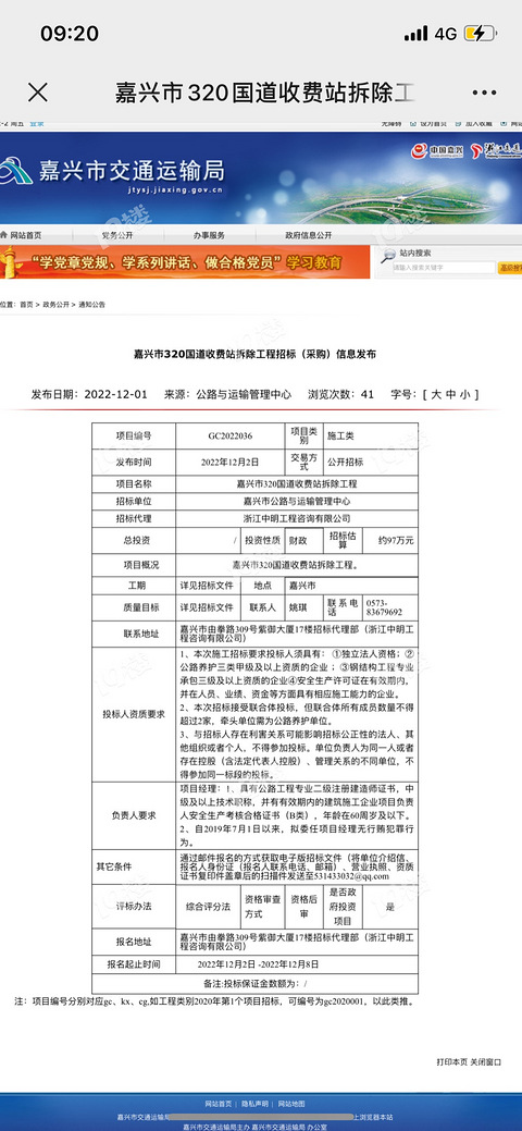 群里看到,嘉兴交通管理局发布了招标信息,320国道收费站要拆除啦?是哪个收费站啊?难道是……七星?洪合?