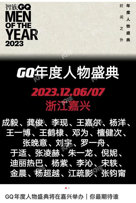 GQ年度人物盛典今年12月是来嘉兴搞?!我们小嘉兴这下真的要火了! 无奖竞猜,你们猜猜是在嘉兴五县两区哪里办? ——好多明星要来嘉兴啊!成毅、龚俊、李现、王嘉尔、杨洋、王一博、王鹤棣、邓为、檀健次、张晚意、刘宇、罗一舟、于适、张凌赫、朱一龙、倪妮、迪丽热巴、杨紫、李沁、宋轶、金晨、杨超越、江疏影,张钧甯……