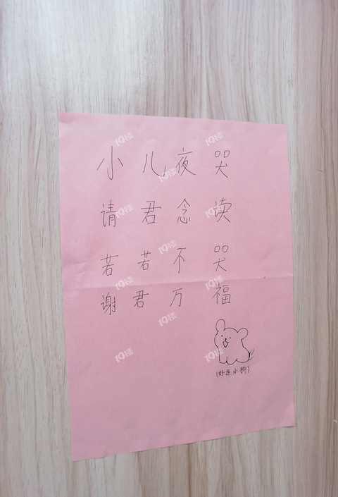事情是这样的,最近晚上单元里总是有一个小孩儿哭闹,就是晚上11点以后还会哇哇哭,半夜也会突然哇哇哭的孩子,养过孩子的都知道还是婴儿状态这种情况避免不了的。可能小孩儿哭的确实比较大声,连我都半夜被吵醒过,妈妈可能也觉得有点扰民了,但又没办法,就在楼道电梯里贴了这张纸。看笔记妈妈也是个可爱的女生,而且还有点文艺,又很懂礼貌的样子。