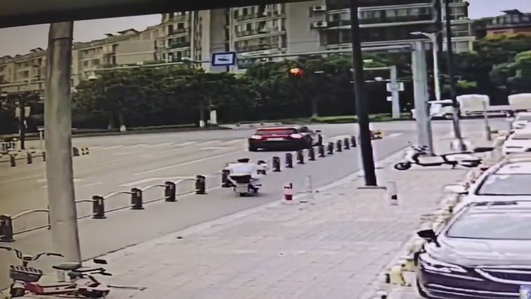 嘉兴今早汽车三轮车相撞!监控视频曝光!又是闯红灯惹的祸?