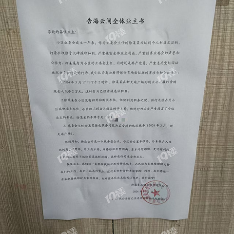 网友投稿:海盐海云间小区业主大会和物业斗智斗勇的瓜你们吃吗?马上要投票准备换新物业了,前期老物业各种小动作,还在全小区粘贴告示要搞业委会主任(还曝光车牌),之后业委会主任直接报警了! 听说今天小新说事也会过来拍……