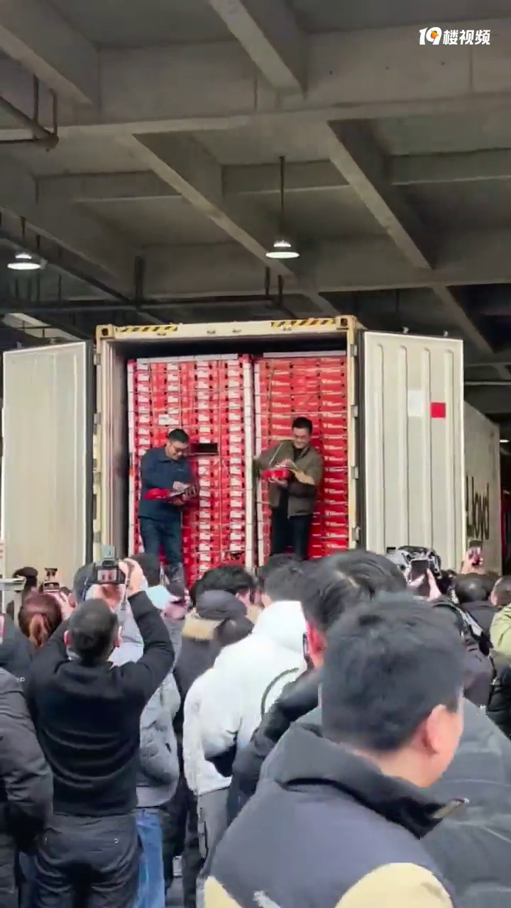 现场人山人海,特别热闹!海运车厘子虽然慢点但是价格比较便宜据说今年的价格比往年都会便宜一点,一斤50左右,你们会买吗 (来源:dy@疯狂水果)