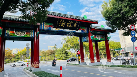友谊街改造完成了,门头重新刷了漆,感觉比以前新了很多大家觉得好看吗这个路标也是新装的,还有韩文边上竖了友谊街介绍