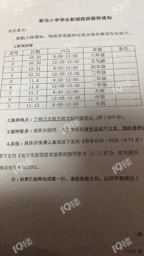 海宁已经有小学发接种疫苗通知了!嘉兴其他县市的都发了没?