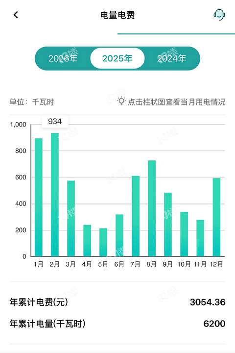 2025年度电费账单出了,一年用了6200度,交了3054元