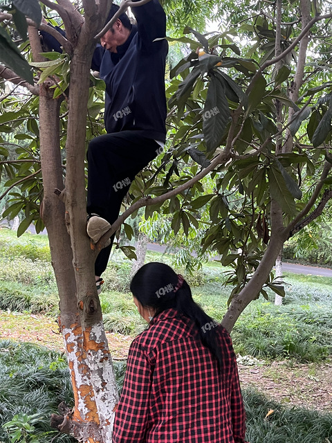 中央公园好好的枇杷树,大清早有人爬树折枝采果!
