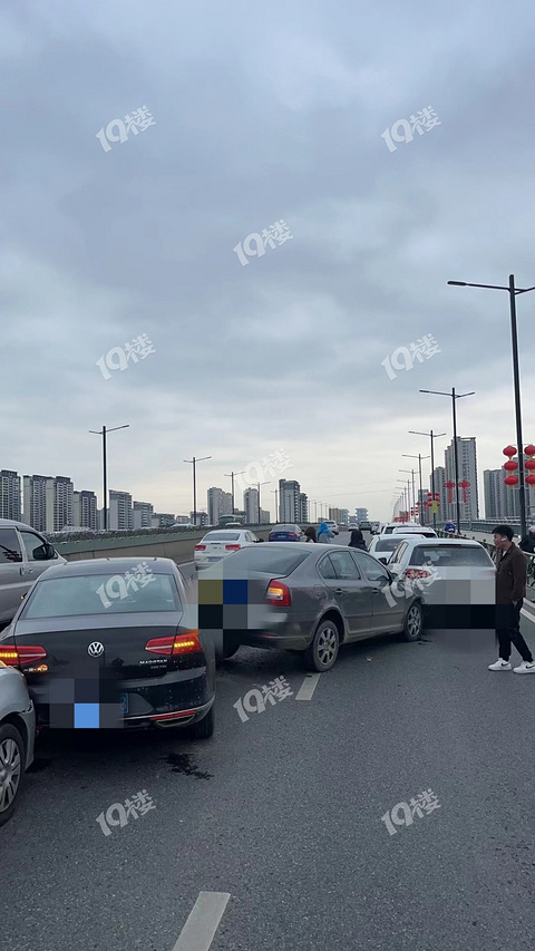 东升西路大桥大早上车辆连环相撞啊