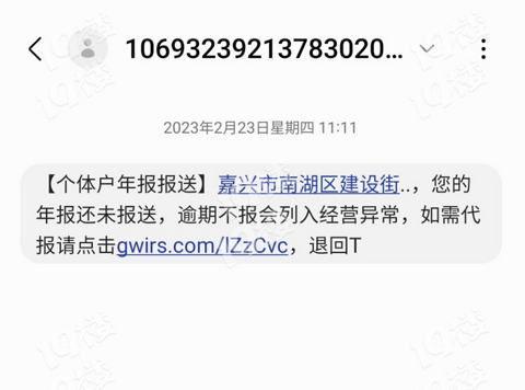 @嘉兴个体工商户们!小心这年报短信的骗局!我差一点就付钱了…