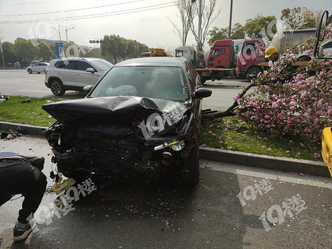 一辆冲去绿化带车头全毁,一辆副驾被撞得……地上全是碎片,来了俩拖车