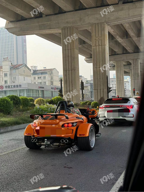哇哇哇哇,在秀洲区高架底下遇到了辆很霸气的车,贼拉风!头一次见到哎,还是浙F的车牌哎。这是个摩托车吧,有人见过吗?