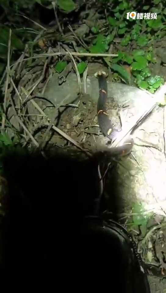 海盐光明景苑后面大河边钓友发现剧毒喜玛拉雅白头蛇,大家夜钓和出行要小心…
