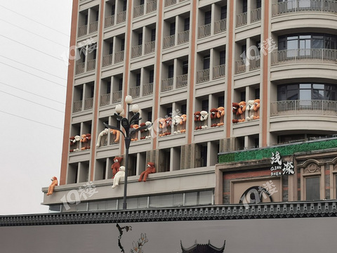 刚路过中山东路这边,楼上一排熊在向你打招呼!太可爱了吧!