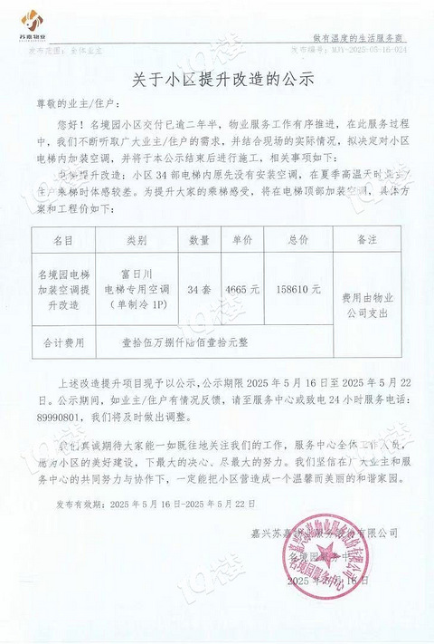 还是本地房企有担当啊!小区34个电梯都要加装空调了!