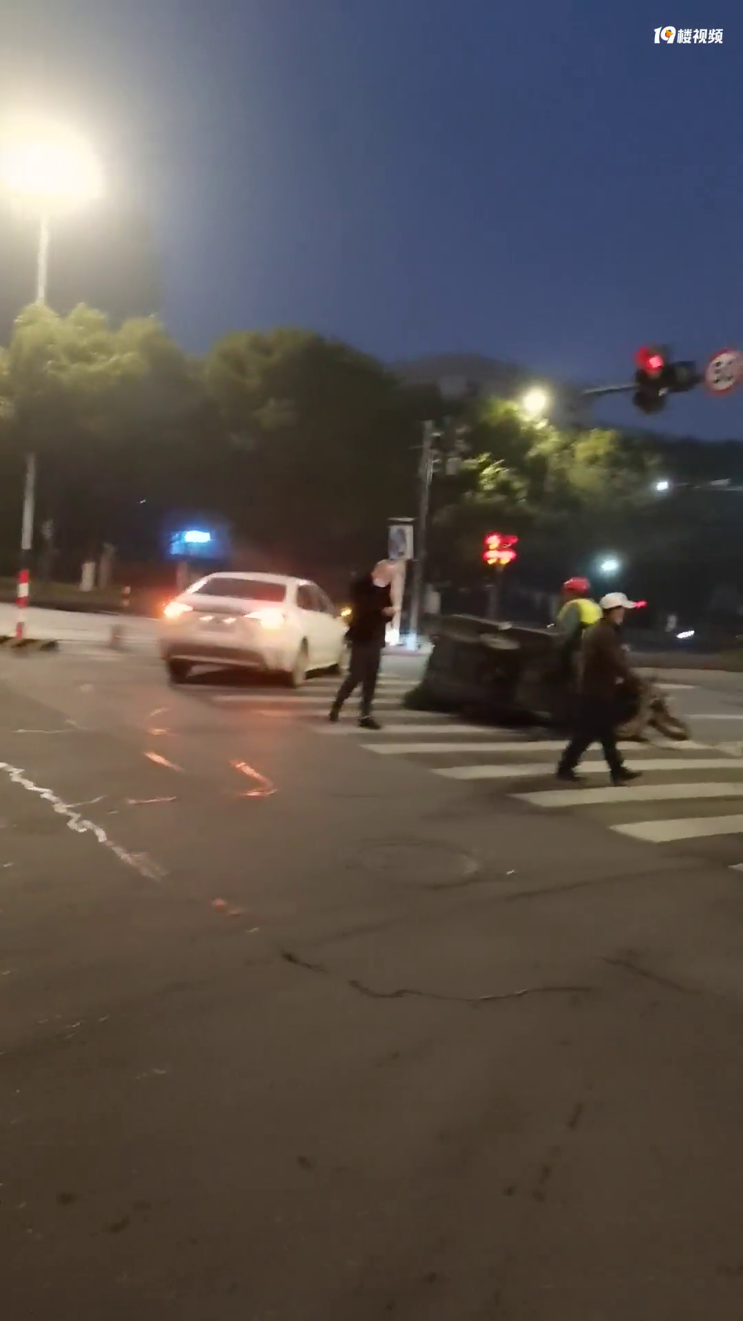南湖大道路今早一白色轿车撞车后大翻车!最新:白车被判负全责