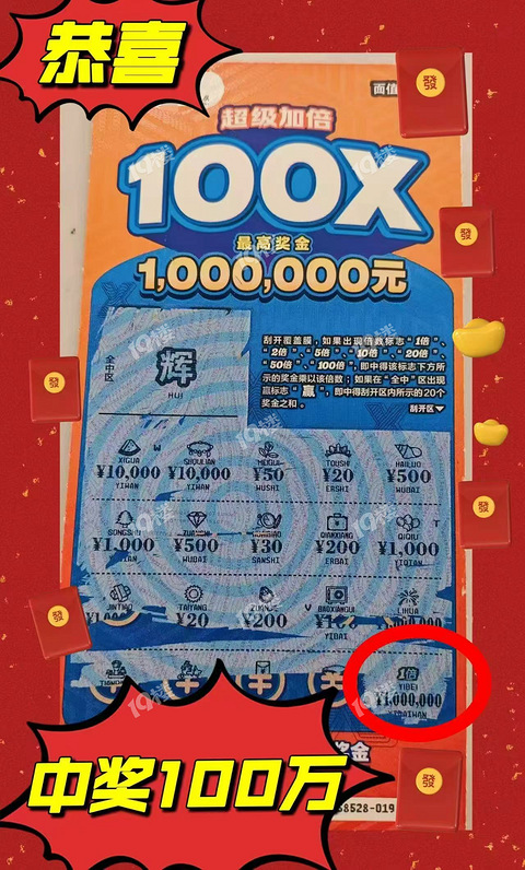 桐乡乌镇镇民合集镇中国体育彩票中出顶呱刮100万!这样的好运气什么时候也给我来点!沾沾喜气!