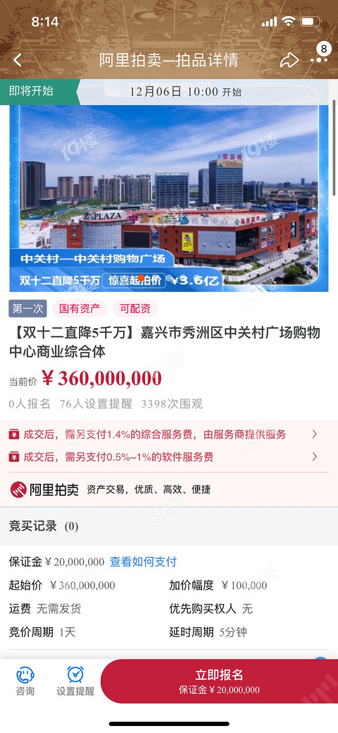 双12嘉兴中关村拍卖大促!直降5000万!网友:我差的是那5KW?