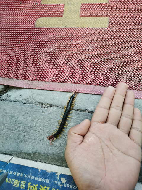一早开门被吓到了!这么大只的应该很少见吧!十多公分长,这种是野生的还是饲养的!有没有毒!近距离看的时候还是挺吓人的。