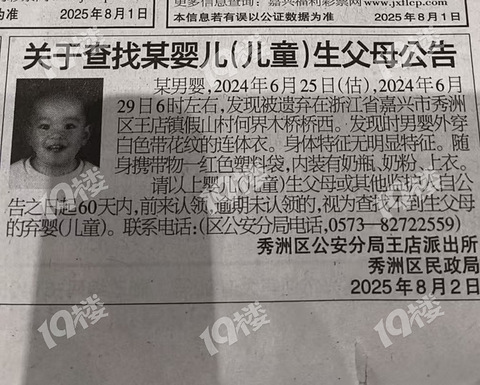 嘉兴登报公告!秀洲区一弃婴寻亲生父母!