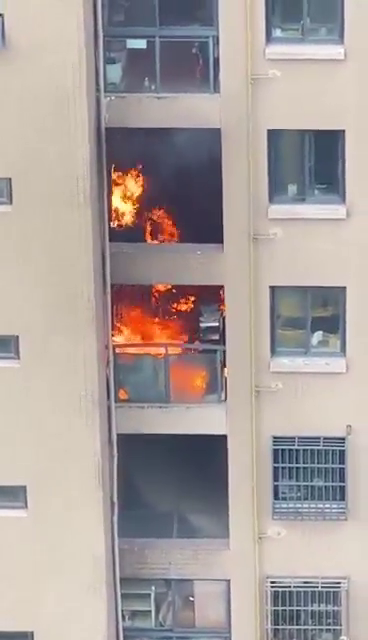 最新:盛世香园一入户花园杂物起火,目前火已经扑灭,无人员伤亡。 —— 近距离实拍!好像许多空调外机都着火了…… 前方速报,明火似乎已经浇灭了!消防员给力! ———— 网友爆料实拍!盛世豪庭小区起火了!明火明显! 消防已经来了,消防员正在云梯上救火!