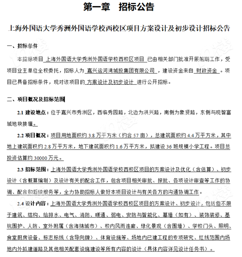 今天,秀洲区公共资源交易中心发布了上海外国语大学秀洲外国语学校西校区项目方案设计及初步设计招标公告。上外西校区就要来了!西校区位于嘉兴市秀洲区,西临秀园路,北边为洪兴路,南侧为象贤路,东侧与现智富城地块接壤。