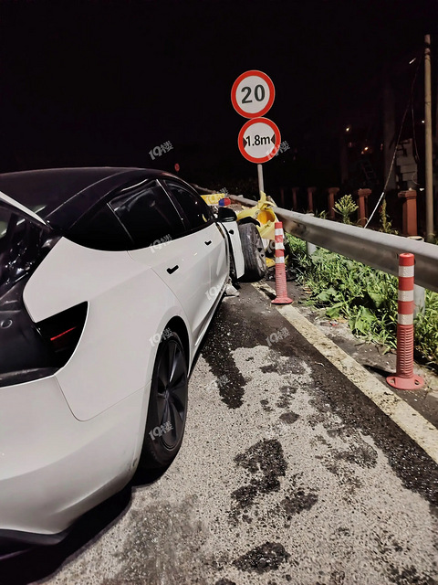 一辆白色特斯拉,深夜撞上了杨庙大桥的限宽水泥墩,感觉前轮也直接撞废了,真的撞得蛮严重的...不过这个网红桥这里经常出事,大家开过这里还是要减速慢行啊