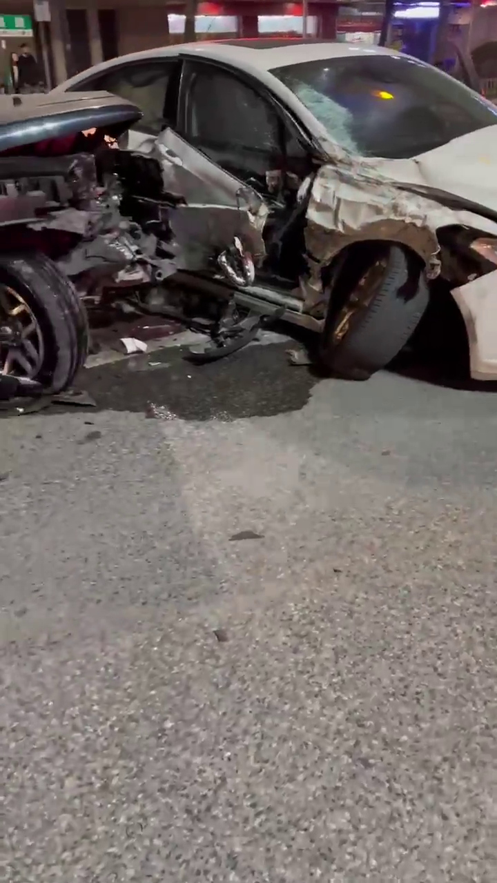 半夜11点多,海盐两辆车撞成这样!直接报废了吧…