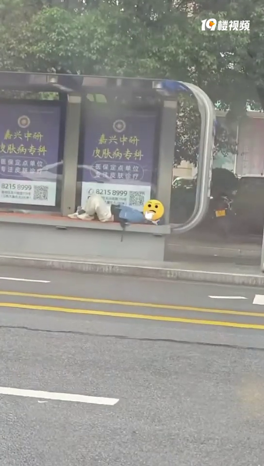 辣眼睛!嘉兴公交站台有人躺在座位上做着不雅行为…