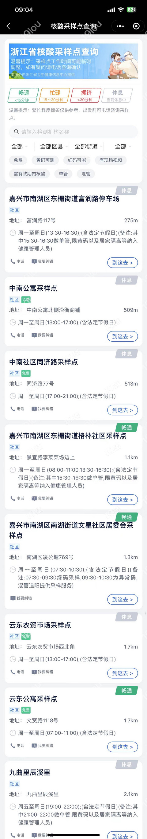 嘉兴的常态化核酸点都回来了?!看了下支付宝里的核酸点查询之前取消的好像又回来了??你们身边的核酸点都回来了没?但还是感觉比之前少了吧...