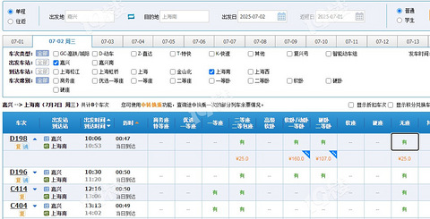 之前不是说从7.1开始去上海南站只有每天下午的班次了么,我刚刚查了一下,发现增停了两个D字头车次,票价25元……其实吧 既然线路上还有Z字头 K字头 T字头车路过嘉兴 那为啥就不能让嘉兴乘客多个选择呢?