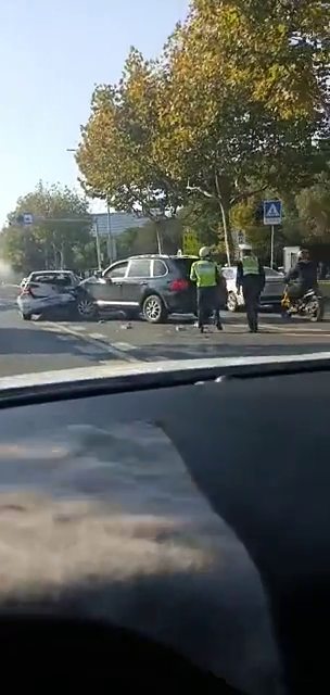 中环南路多车追尾!卡宴怼上高尔夫的屁股 据说是因为礼让行人?