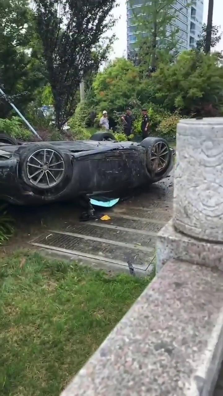 苏B保时捷车主这是在开飞机吗?东升路边大翻车…