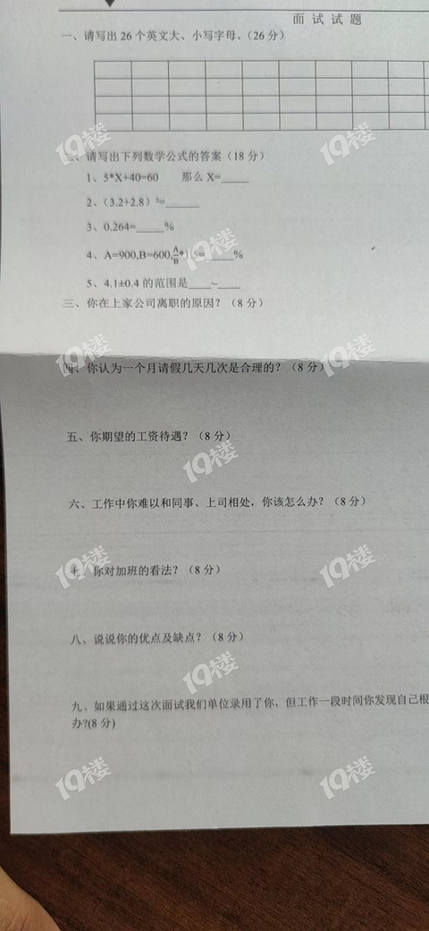 群里看到神奇面试题,好像是海宁的某个电子厂的,面试既要考英文还要考数学,看看这张面试题你能拿几分?