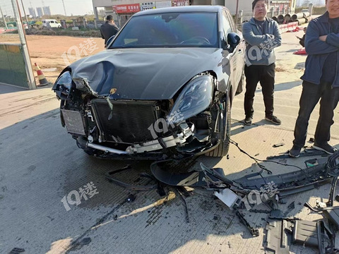 保时捷豪车不经撞啊车下巴全掉了!据说车子刚买来半年…