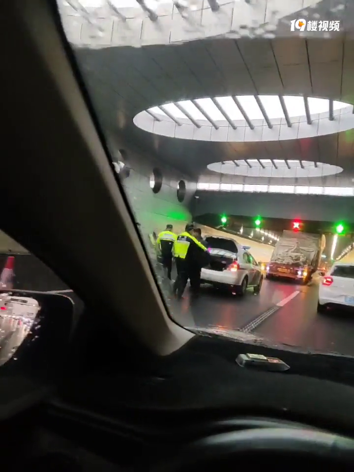 嘉兴晚高峰添堵!大挂车上高架后卡在长水路隧道口了…