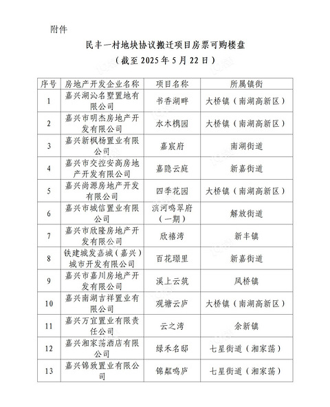 民丰一村地块协议搬迁项目房票可购楼盘(截至2025年5月22日)