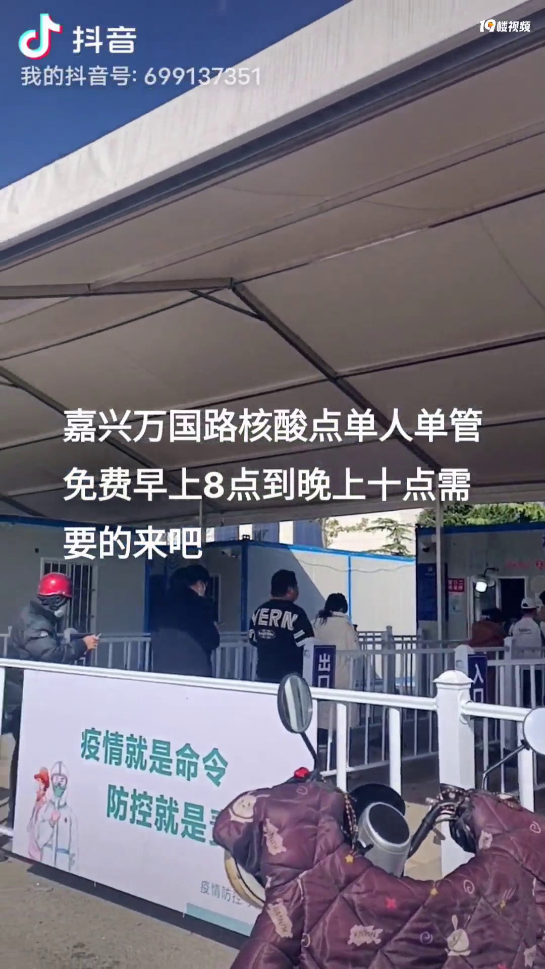 嘉兴万国路核酸点单人单管免费,早上8点到晚上22点,需要的来吧