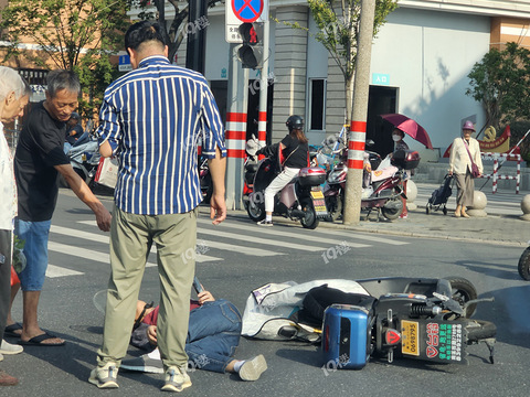 网友爆料:就在刚刚,亚澳路突发事故!小汽车撞了电瓶车,男子倒地一动不动,女车主在打电话……这个路口早高峰本来就蛮堵的