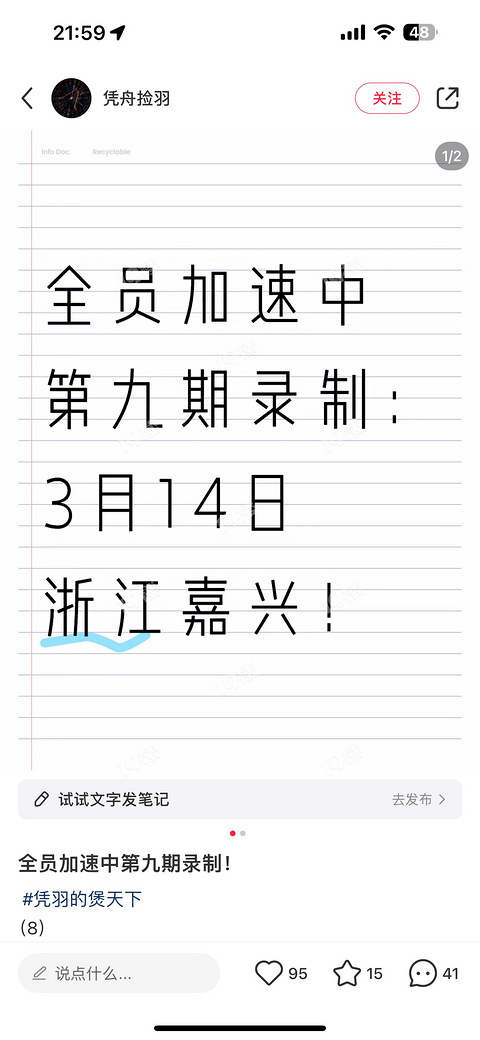 在小某书上刷到,全员加速中要来嘉兴录制,正在招群演,尊嘟假嘟?如果是真的,0713粉和院人粉快冲啊!好想看文韬阿蒲石凯啊!