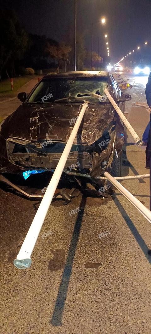撞护栏撞成这样好吓人!秀水大道昨晚单车事故…